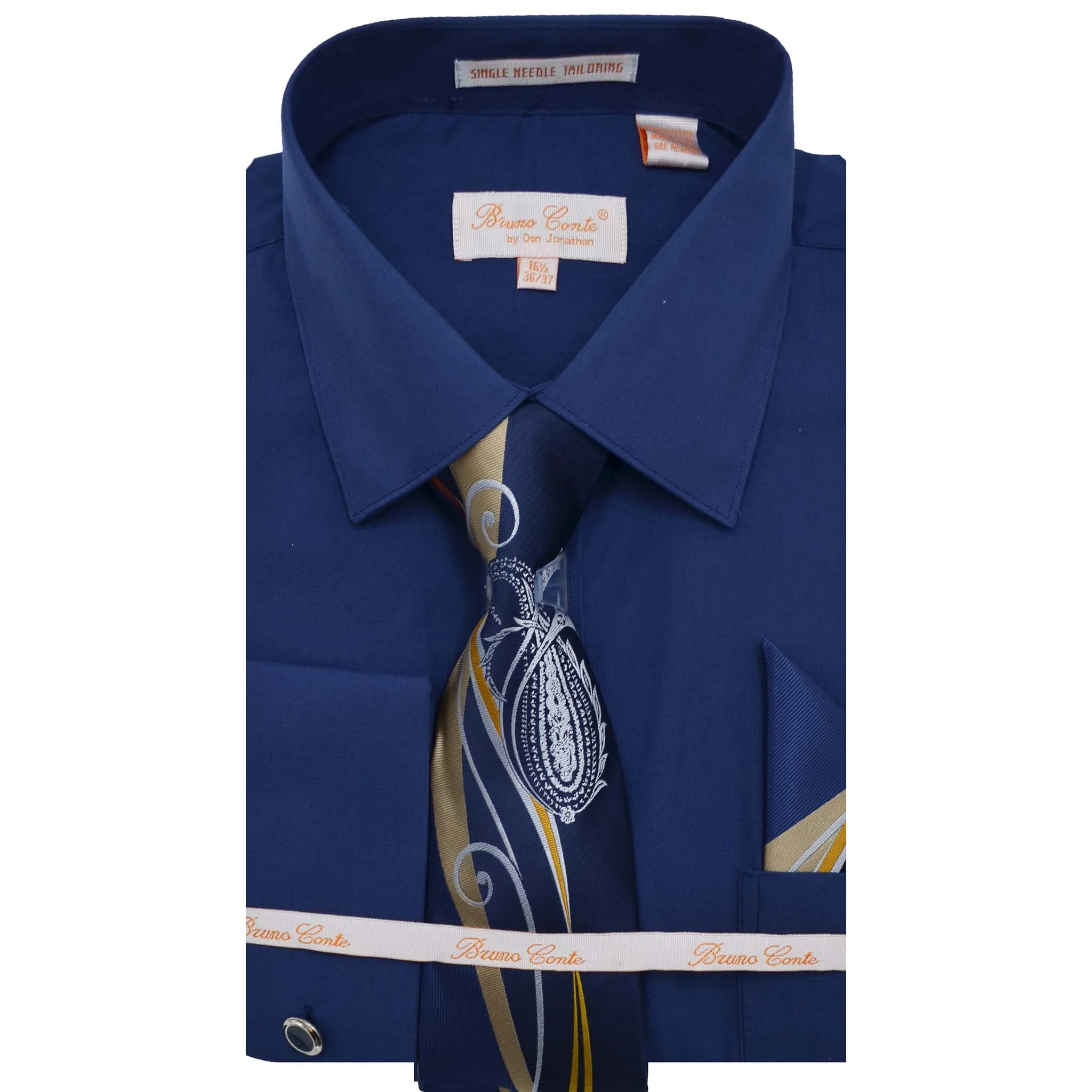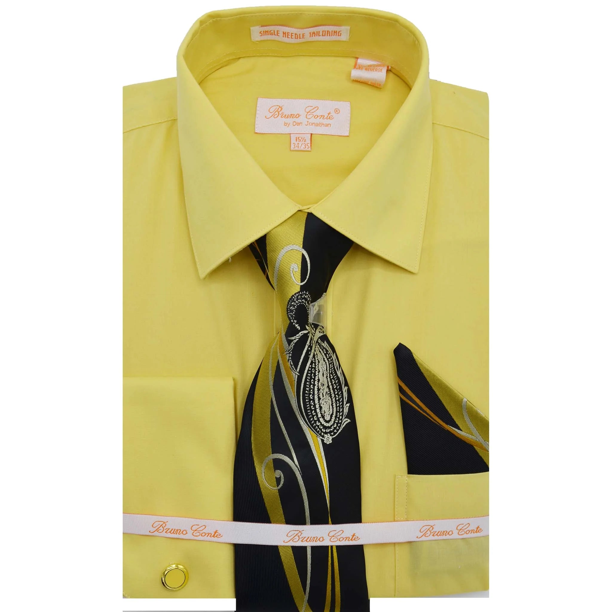 Elevate your formal look with the Bruno Conte Solid Shirt w/ Tie, Hanky & Cufflinks BC1169. Crafted with high-quality materials, this set offers a classic and sophisticated style. The shirt, tie, hanky, and cufflinks come together for a polished and coordinated look. Perfect for any special occasion.