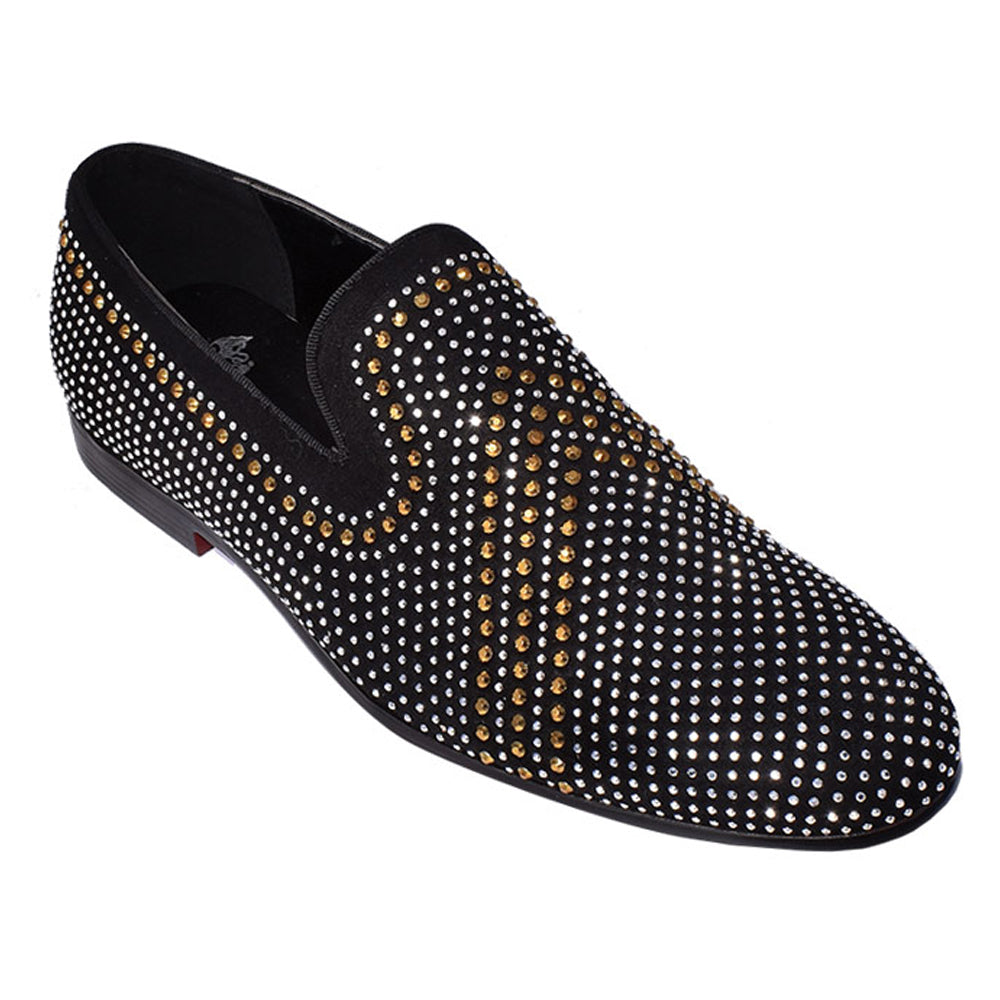 Royal Shoes are eye catching men's slippers that are guaranteed to have you standing out in the crowd. This slip-on is adorned with rhinestones that catch the light in all the right ways and the microfiber color matching base helps tie your entire look together.