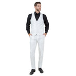 Elevate your formal attire with the Men's Tazio Slim-Fit 3pc Suit in Ivory. Crafted with precision by Tazio, this ensemble exudes sophistication and style. The Solid Sharkskin jacket features a Slim Fit, Two Button Front Closure, Notch Lapel, and convenient Side Vents, while the vest adds a polished touch with its Five Button closure and V Neck design. Completing the look, the coordinating Solid Sharkskin pants offer a sleek Flat Front design, 37 Inch Inseam, and practical features like back besom pockets with button closure and front angled slip pockets. Perfect for weddings, galas, or formal business events, this suit guarantees a timeless and elegant appearance with every wear.