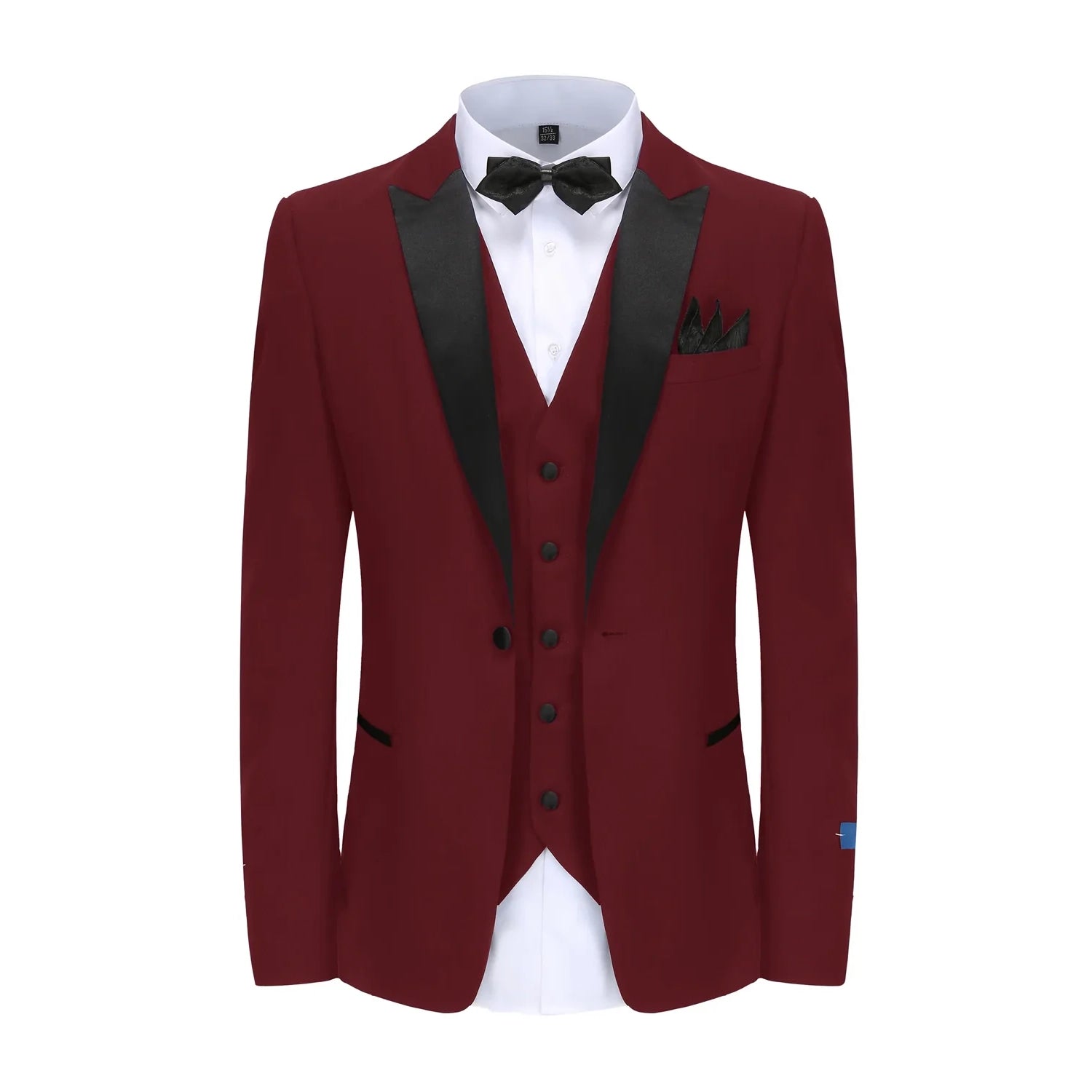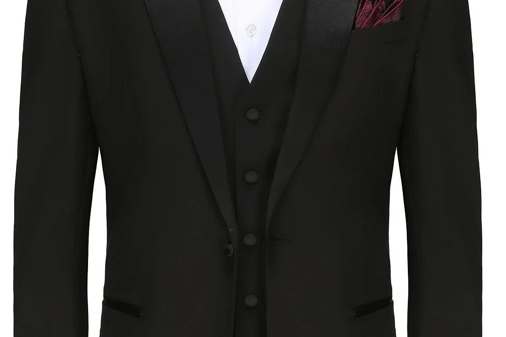 The TX500 Braveman Slim Fit Vested Tuxedo features a modern slim fit design, crafted with a blend of poly rayon for a sleek and sophisticated look. This 3-piece tuxedo includes a 1-button closure and 2 vents for added comfort and breathability. Perfect for any formal occasion.